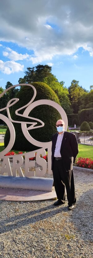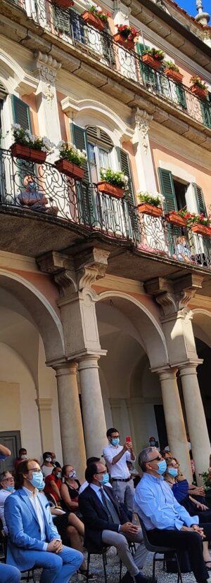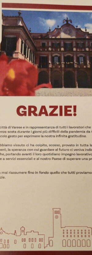 Anche DON ANGELO a nome di tutti i Sacerdoti della città ha ritirato la pergamena del GRAZIE dal Sindaco di Varese Galimberti all'esterno del Palazzo Estense