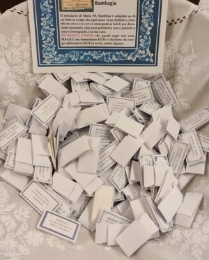 Nella Cappella S. Giovanni Paolo II abbiamo esposto "Maria Bambina" alla venerazione dei fedeli.Dal Santuario di Maria Bambina in via S. Sofia a Milano abbiamo ricevuto i "bambagini", astucci di carta che contengono un pezzettino della bambagia che ha toccato il simulacro di Maria Bambina.