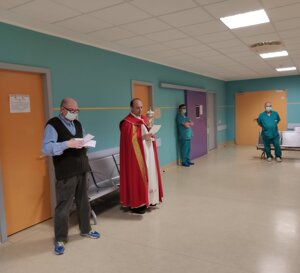 25 e 26 Marzo: Don Angelo e Don Antonio portano la Benedizione del Signore nei reparti a tutti, malati, operatori sanitari e personale amministrativo.