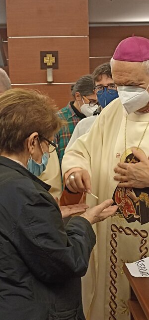 Sr. Maria Grazia Viganò, oncologa del S. Raffaele, ci detta l'intenzione alla decina animata dai nostri ammalati e dal personale sanitario del nostro ospedale: Maria, facci gustare la bellezza della fede dentro le nostre vulnerabilità...